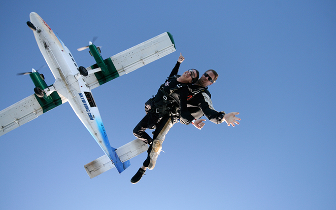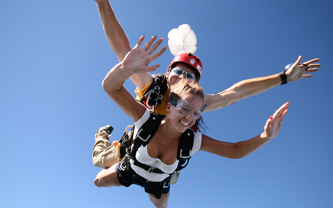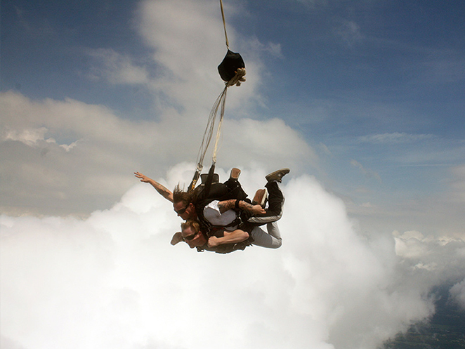 Level 2 of your Accelerated FreeFall course provides you with a chance to refine your body position. It involves 2 instructors, but one of them may release you for a moment to test your stability in the air. The instructor will take hold of you again as you deploy your parachute.