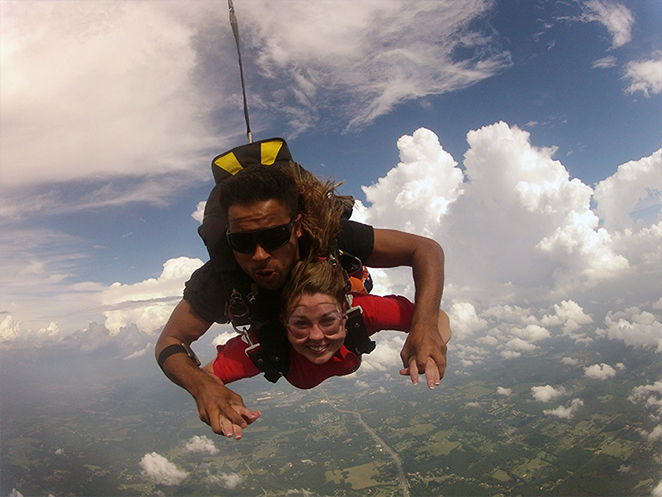 Now, you might be wondering, "What's the difference between strong and Tandem Skydiving?" Accelerated FreeFall is skydiving on an entirely new level. Instead of your instructor being strapped to you, your AFF program consists of two instructors (or one in some cases) who jump with you and help guide your freefall. Once your parachute opens, you are given either radio or hand signals to guide you safely back to the dropzone. If you've acquired a taste for the rush of the sport after your first tandem skydive, then enrolling in a course with one of Skydiving Birmingham Alabama's affiliate skydiving schools is the best thing you can do to learn.